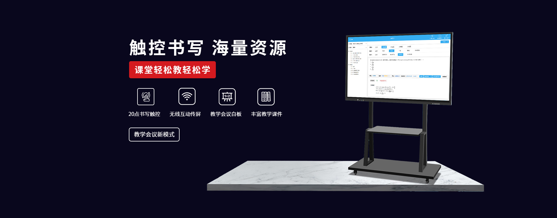 〔教育智慧黑板〕 是新一代教學顯示設備,具有高清顯示、高精度觸摸操作應用,黑板書寫教學功能與一身;內(nèi)置安卓、windows系統(tǒng),可滿足教學不同的應用軟件使用;純平面書寫黑板,適應粉筆,無塵粉筆、水性粉筆書寫,適合不同環(huán)境應用;觸摸切換書寫黑板與屏幕顯示,可讓老師快速進行教學應用切換;純平面外觀,解決傳統(tǒng)推拉黑板的笨重,復雜的結(jié)構特點,大大提升了教師授課的體驗感和演示效果。